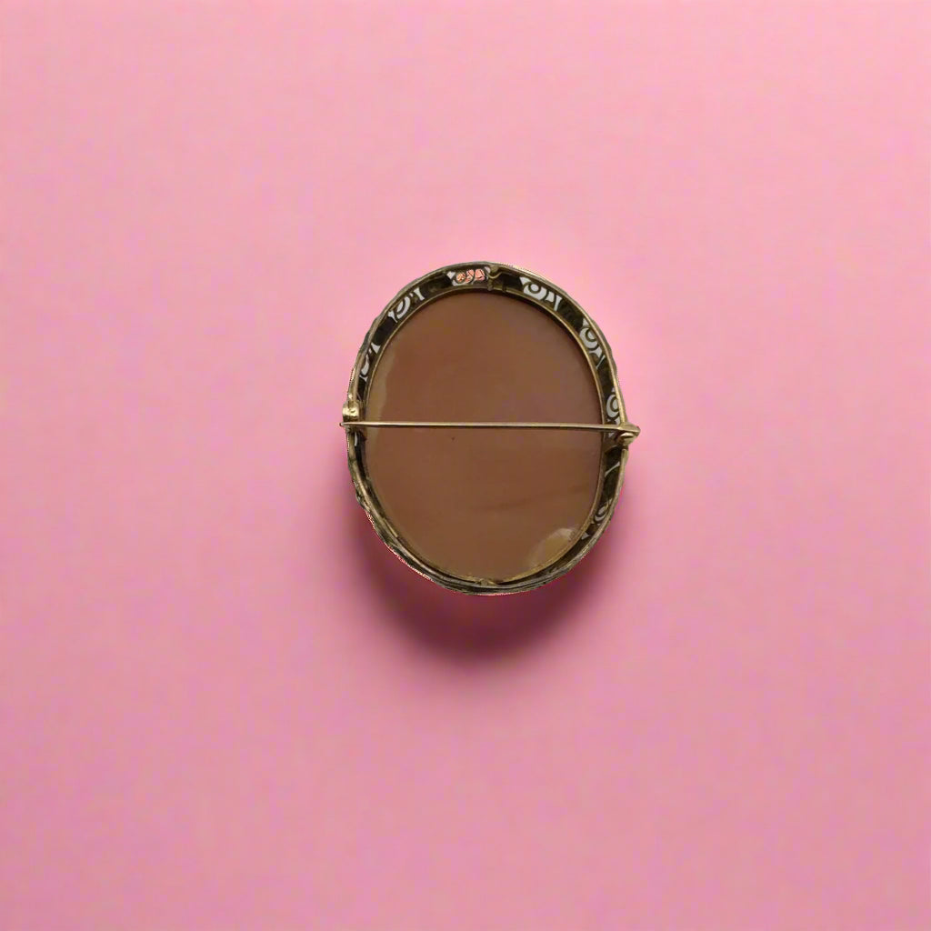 Why This Pin Stands Out: The large size of the hand-carved shell cameo, paired with the 10K yellow gold setting, makes this pin a standout piece. Its excellent condition and classic design highlight the craftsmanship of the early 1900s, making it a timeless addition to any collection.
